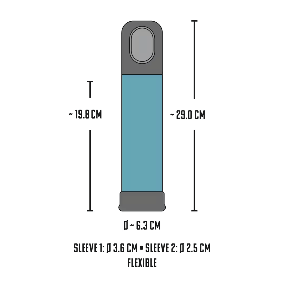 Skaidriame cilindre su matavimo skale (cm ir coliais) vakuumas sukuriamas greitai ir lengvai. Tai leidžia varpai maksimaliai išsipūsti iki didžiausio dydžio ir formos. LED ekrane galima stebėti siurbimo režimus ir baterijos įkrovos lygį. Pridedami du silikoniniai antgaliai su skirtingais skersmenimis, kad būtų užtikrintas puikus sandarumas. Švelni bei elastinga rankovė puikia imituoja makšties audinius. Variklio pompa su ekranu gali būti atsukta, todėl cilindrą ir antgalį lengva valyti atskirai.